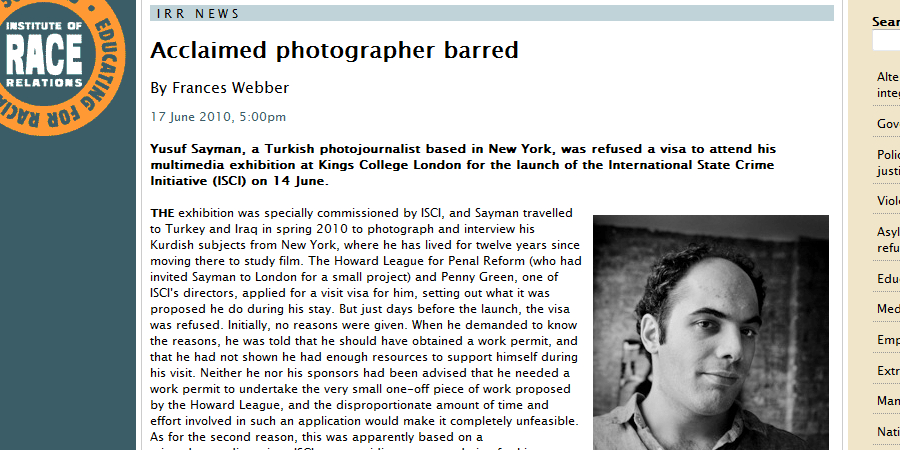 The Institute of Race Relations has published a story by Frances Webber on the UK’s refusal to allow Yusuf Sayman to attend the ISCI Launch. The article notes: